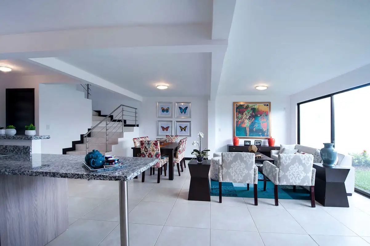 34 casas de 2 plantas, cada una con 3 habitaciones, sala de estar, cocina integrada y patio amplio, para que tu familia viva cómoda y conectada.